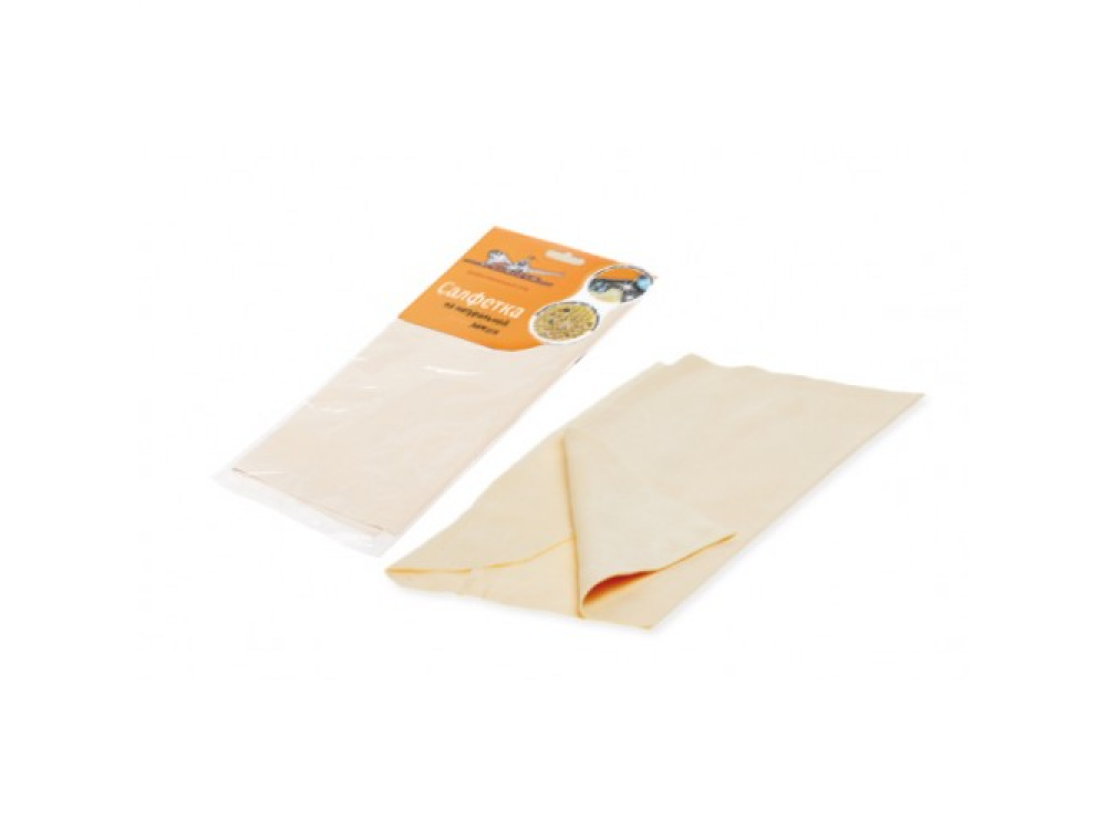 Салфетка из натуральной замши (30x28 см) в целлофановой упаковке с навершием - 1шт.