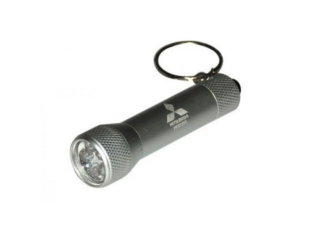 Легкий корпус серебристого цвета, длиной около 7 см. Пять ярких светодиодов. С кольцом для ключей.