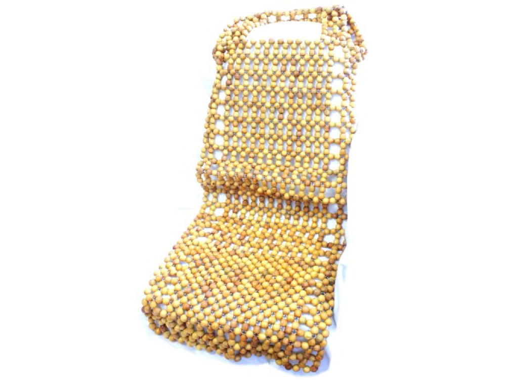 Накидка на сиденье автомобиля выполнена из косточек, что позволяет снять нагрузку с позвоночника, а натуральные косточки, которые расположены в центре накидки, окажет охлаждающее действие в жаркую погоду