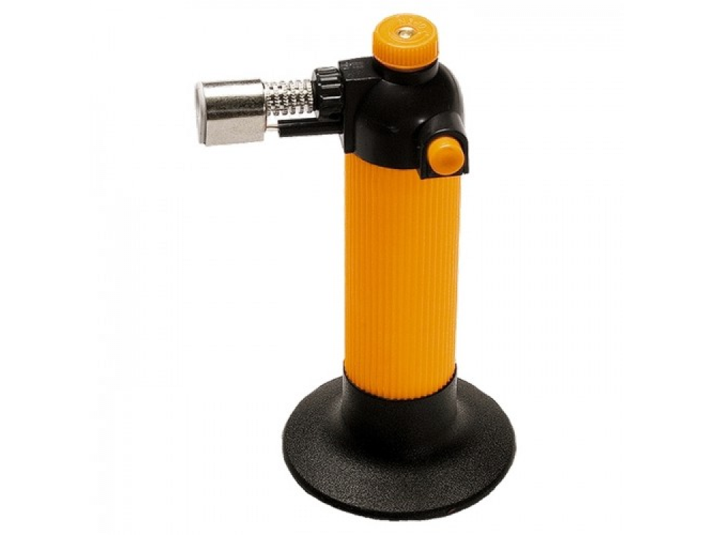Подача газа регулируется вращением ручки. Удобна в эксплуатации, оснащена пъезоподжигом. Предназначена для пайки, нагрева деталей, розжига костров и т. д.