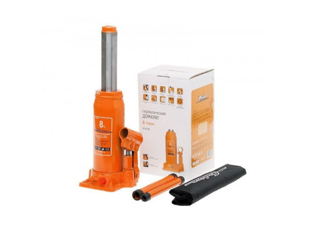 Бутылочный домкрат данной модели оснащен механизмом, работающим на гидравлической основе, а также предохранительным клапаном, который помогает избежать аварийных происшествий. Грузоподъемность домкрата данной модели составляет 8 тонн, а высота подхвата равна 236 мм. Эксплуатацию устройства необходимо выполнять в соответствии с прилагаемой инструкцией.