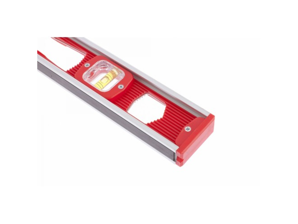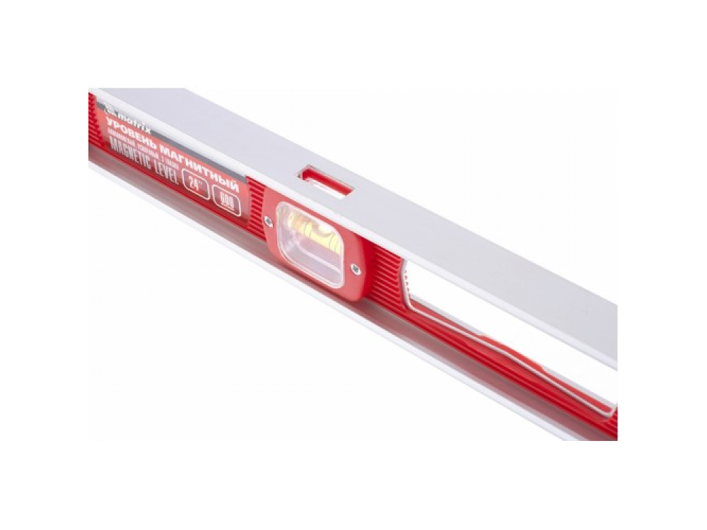 Корпус уровня изготовлен из ударопрочной пластмассы с алюминиевым каркасом. В корпус инструмента встроены магниты для фиксации на металлических поверхностях. Модель имеет три акриловых глазка для проверки отклонений по горизонтали и вертикали. Точность измерений – 1 мм м (0,057 градуса).