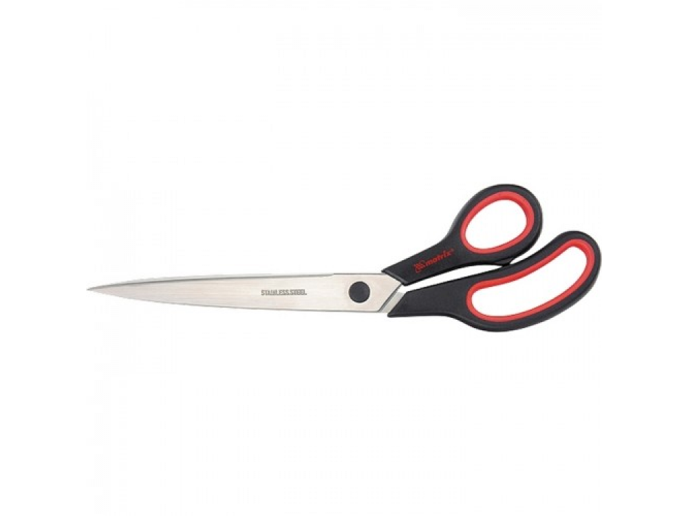 Традиционные хозяйственные ножницы с двухкомпонентными эргономичными рукоятками и остро заточенными лезвиями длиной 280 мм предназначены для резки бумаги, картона, различной ткани. Изогнутость эргономичных рукояток позволяет работать с обойными листами большой длины.