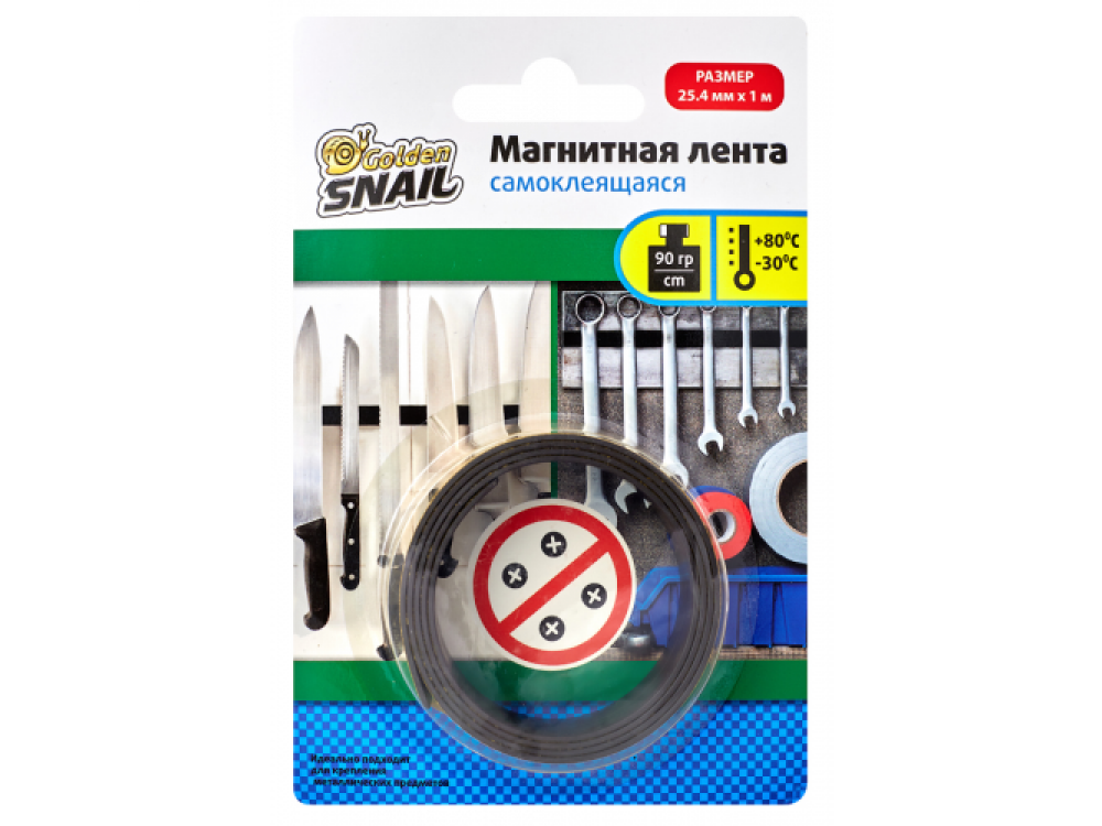 Магнитная лента с клеевым слоем имеет высокую степень прочности и обладает большой удерживающей магнитной силой. Один погонный сантиметр ленты способен удержать деталь, которая весит 90 грамм. Этот продукт отличается устойчивостью к влажной среде и перепадам температур, поэтому может успешно использоваться в различных условиях. Для усиления магнитных свойств рекомендовано крепить ленту в 2 слоя.