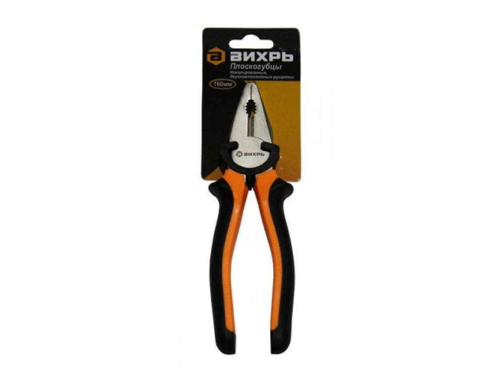 Плоскогубцы ВИХРЬ 160мм - удобный инструмент для слесарно-монтажных работ. Лезвия никелированные, рукоятки из двухкомпонентного материала и не скользят в руках. Эргономичная конструкция обеспечивает надежный захват деталей.