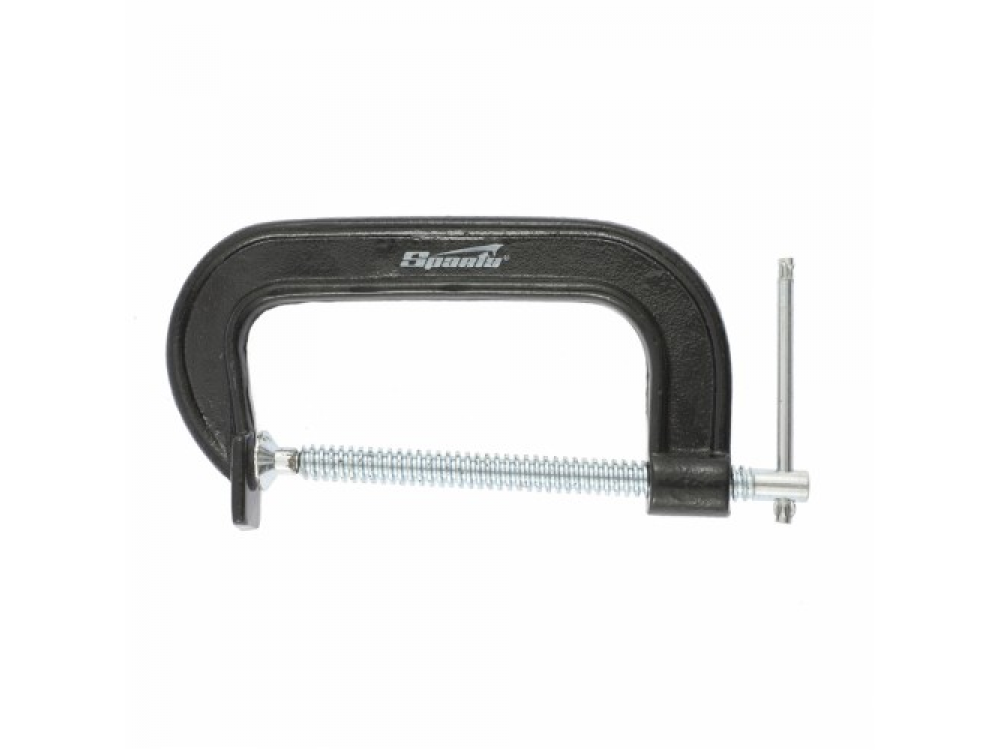 Рама струбцины покрыта цветным лаком. Винт струбцины со специальным зажимом и крупной червячной резьбой позволяет надежно фиксировать предметы.